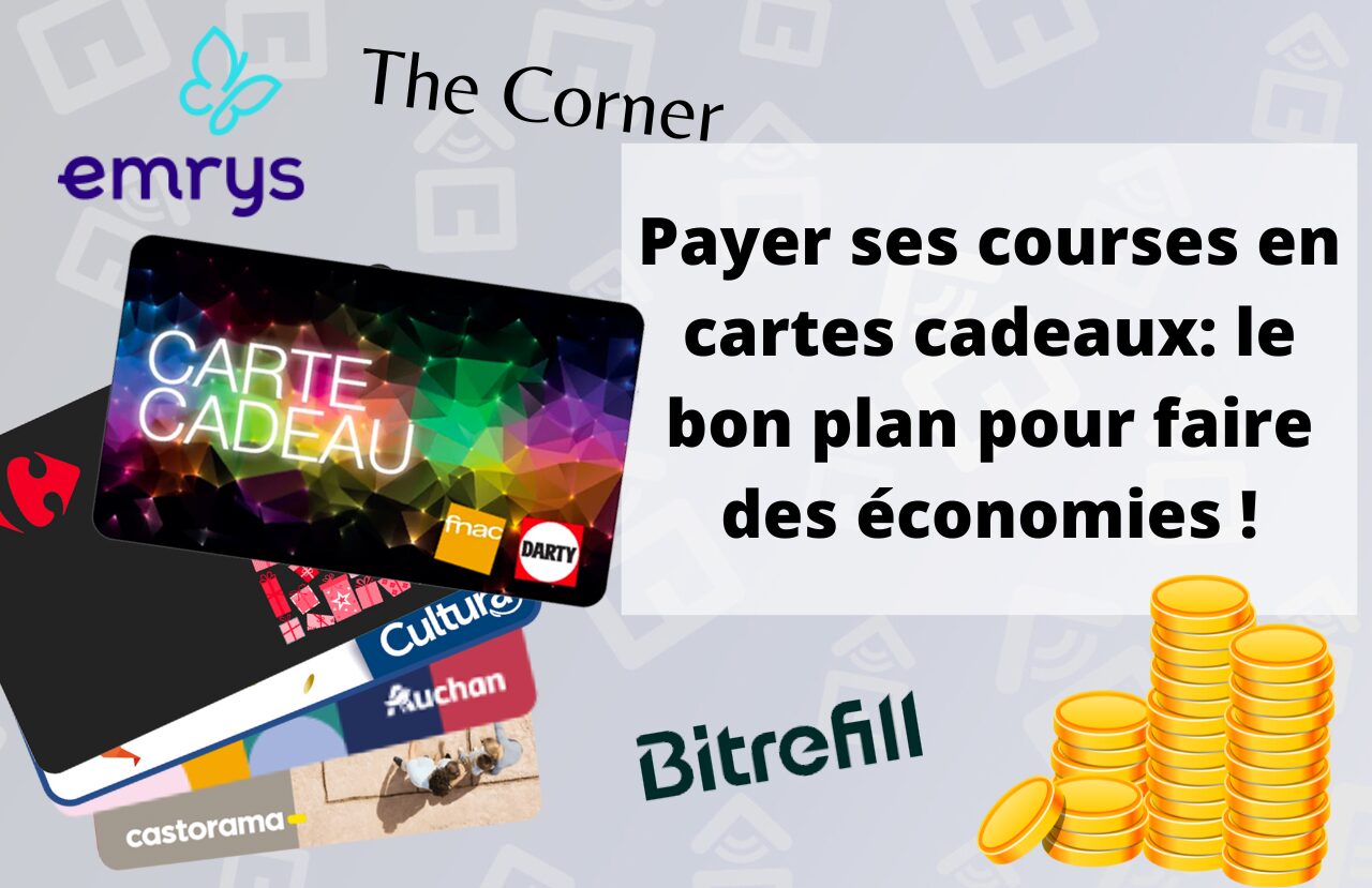 Il ne vous aura pas échappé que les prix ont flambé ces derniers mois, que ce soit le prix de l’essence jusqu’au simple paquet de pates. Le pouvoir d’achat ayant considérablement fondu, nous en sommes tous à chercher comment l’améliorer: cela peut se faire en gagnant plus, via divers placements financiers comme nous avons déjà pu voir; mais cela peut se faire bien sûr en payant moins cher nos courses chaque jour. Une technique à la mode est de payer ses courses en cartes cadeaux. Emrys, Bitrefill, ou encore The Corner permettent d’acheter des cartes cadeaux en masse pour de très nombreuses enseignes, afin de réaliser de belles économies.